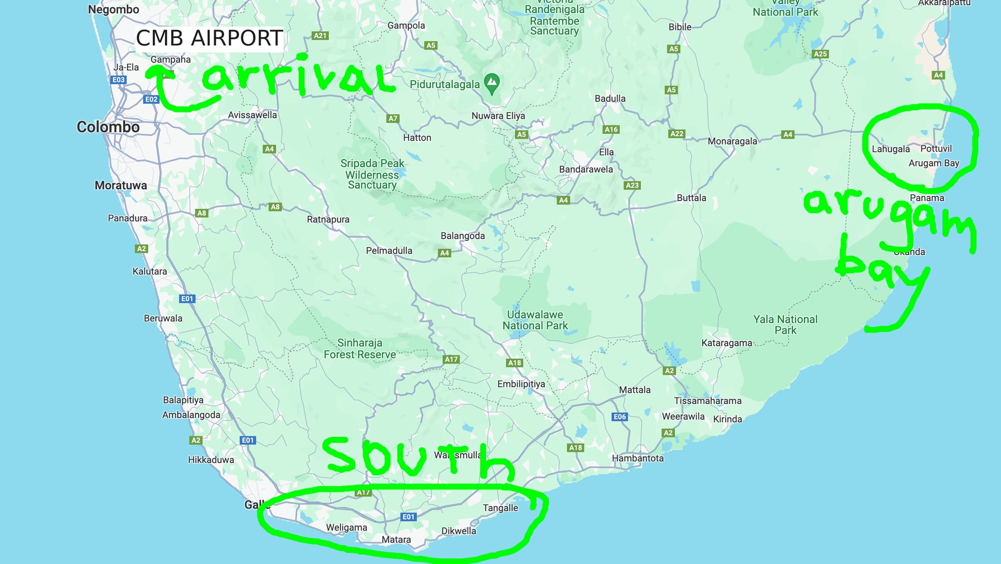 In addition to this map, I’ve made for the Arugam Bay surfing area. Here’s just a text list of places in Arugam Bay and the South that offer good quality food. Kudos to the local nomad group for making the list.