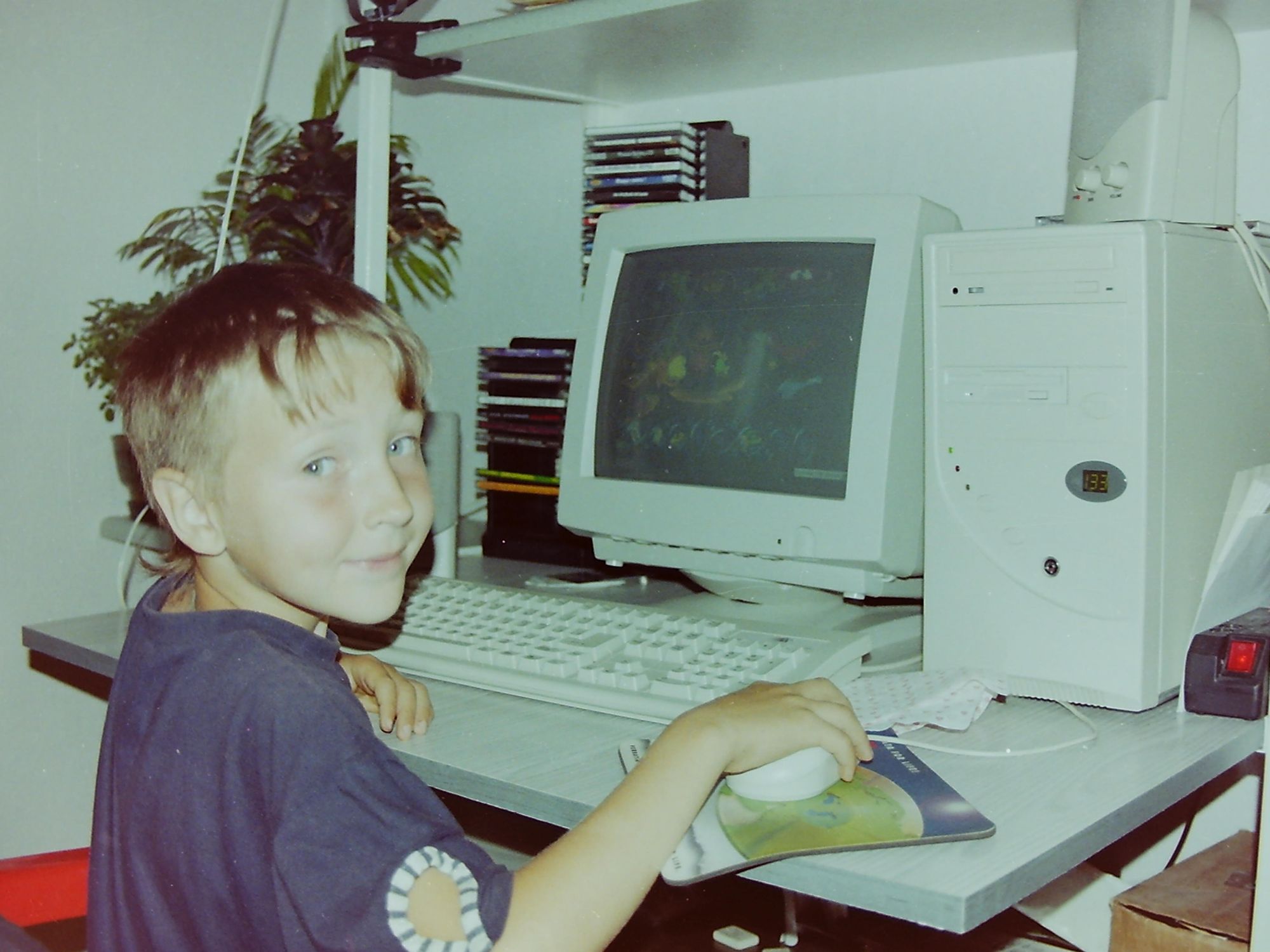 My obsession with computers was born when my godfather let me play games on his workstation once every couple of months. Still remember spending a whole weekend solving detective Freddi Fish's puzzles.